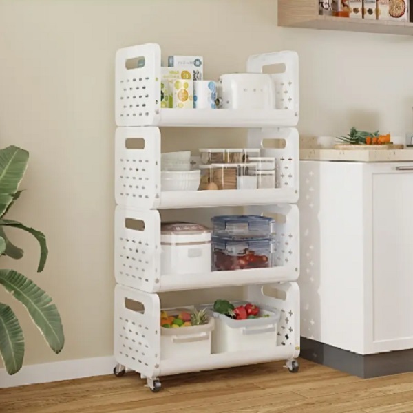 Ραφιέρα αποθήκευσης με ρόδες και 4 αεριζόμενα ράφια 99x40x28.5 YH9911-4 Λευκή