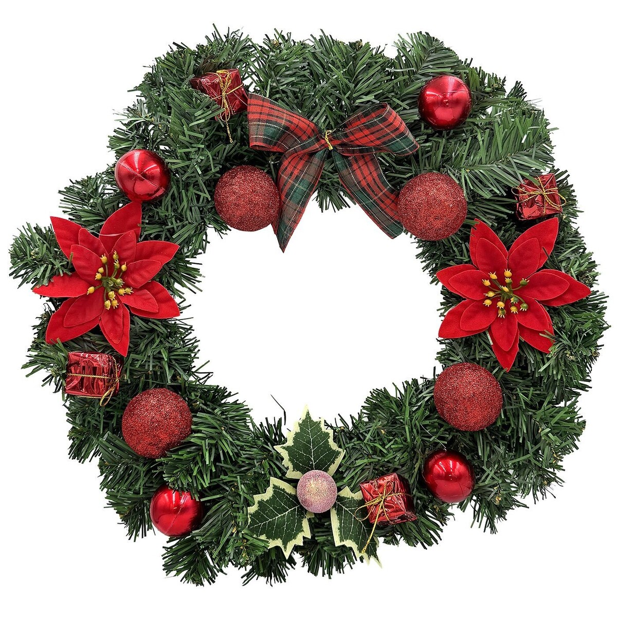 Στεφάνι Κόκκινο με Αλεξανδρινά, Κουκουνάρια ø40cm