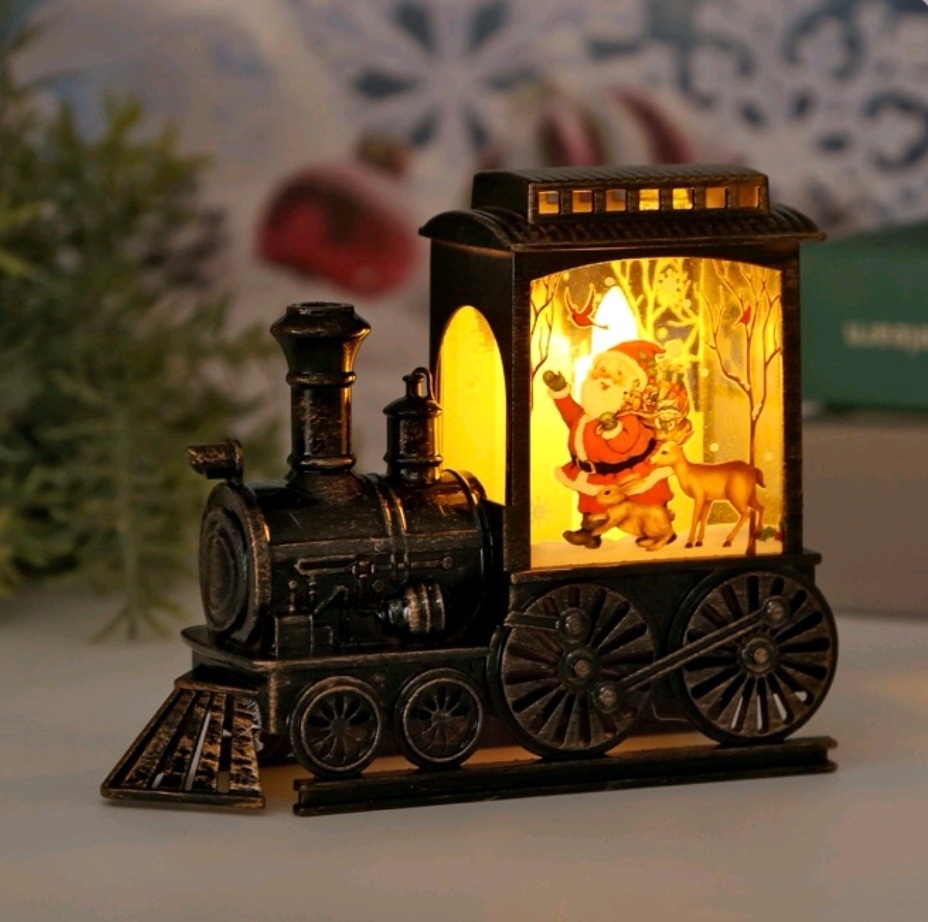 Χριστουγεννιάτικη χιονόμπαλα Διακοσμητικό Τρενάκι Φωτιζόμενο με τον Άγιο Βασίλη