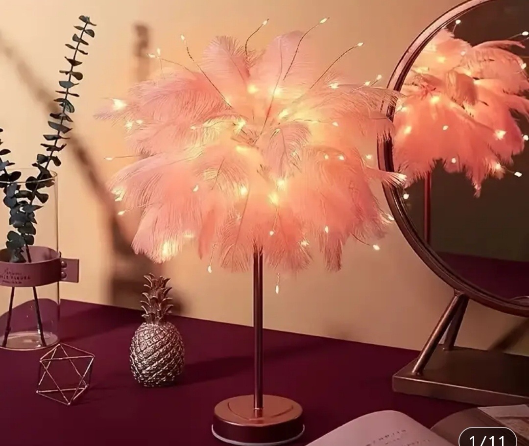 Ένα φωτιστικό σε σχήμα δεντράκι με πούπουλα, ιδανικό για το δωμάτιο, και όχι μόνο! Μία υπέροχη διακόσμηση για το το πάρτυ, το σαλόνι και το μπαλκόνι σας.